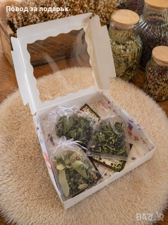 Тези билкови кутии са създадени за хората, които ценят чистите съставки и домашния уют. Всяко стръкче е събирано с внимание сред чистия планински въздух, сушено е по традиционни методи и е опаковано с грижа, за да достигне до вас с пълния си аромат и лечебна мощ. 🌿