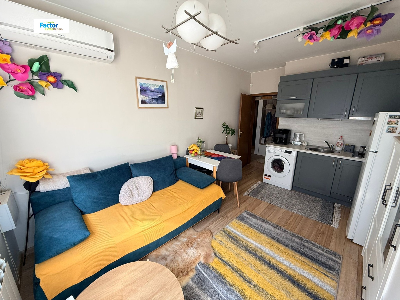Фактор Истейт Банско предлага за продажба двустаен апартамент в гр. Банско, в жилищна зона близо до центъра, на около 10 минути пеша от централната част, в близост до автогарата и магазин Billa.