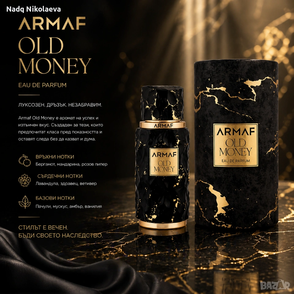 Armaf Old Money Eau de Parfum е аромат с характер, класа и увереност. Създаден за хора, които не следват тенденции, а оставят собствена следа. Богатото му присъствие съчетава елегантност, дълбочина и луксозно усещане, което остава запомнящо се.