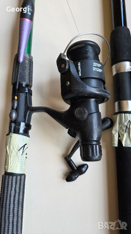 3м. Пръчка, Спининг лепен най вероятно спукан или счупен. Машинка Balzer Bonita