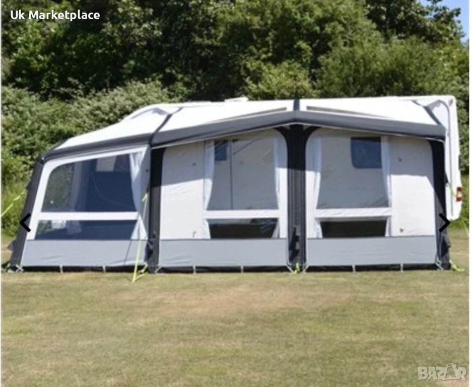 Продавам Kampa Rally Air Pro 390 Plus (L/H) внос от Англия – висок клас надуваема тента за каравана, идеална както за кратки уикенд пътувания, така и за дълъг къмпинг престой.