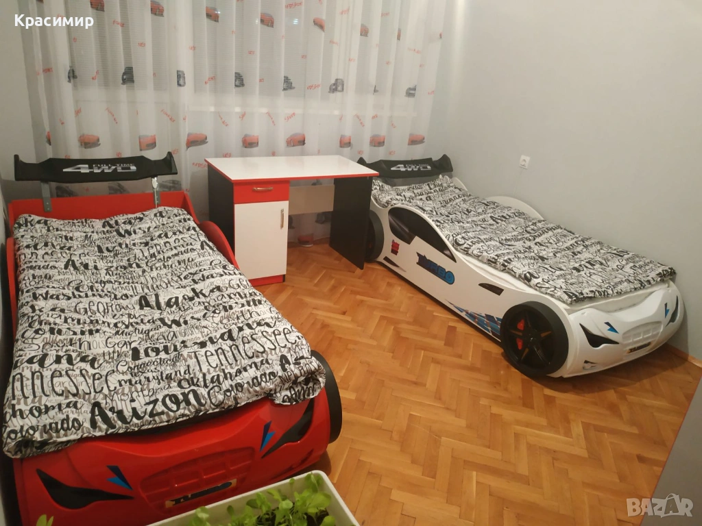 Продавам две детски легла "Турбо" със светещи фарове. Имат следи от употреба, както и са укрепвани отдолу, поради провисване. Леглата вървят с матраци. Цена на червеното легло - 115€. Цена на бялото легло - 100€.