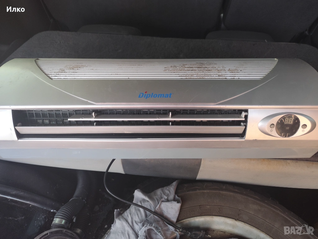 Продавам дипломат печка за стена тип климатик.Няма дистанционно и перката спря да врати другото е изрядно.За части.