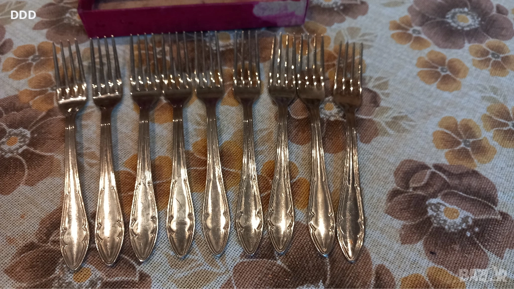 Десертни вилици 9 бр. Велико Търново с надпис, чисто нови неизползвани с диаметър 14,5 см., с оригиналната кутия. Цената е за всички.