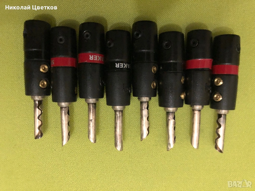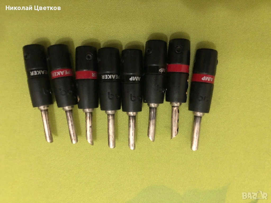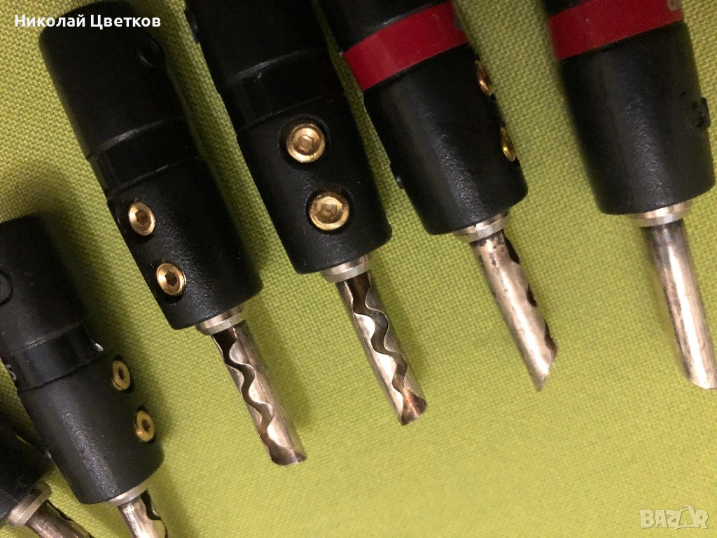 Продавам комплект оригинални накрайници за спикър кабели в много добро състояние, умишлено не съм почистил патиниралата част от посребряването.