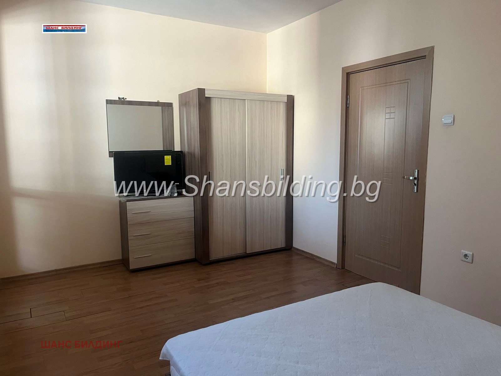 Напълно обзаведен със спалня комплект с гардероб, скрин и оставащо място за други мебели!