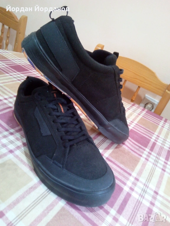 Оригинални, бразилски, спортни обувки от велур,плат и гума.почти нови,обувани са веднъж!.На етикета пише 44 номер,но по-скоро са 43 номер!Черни!