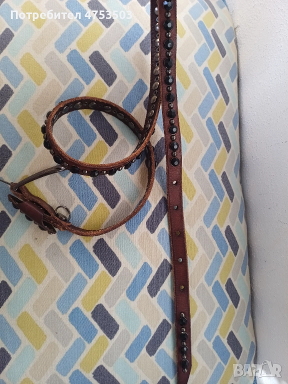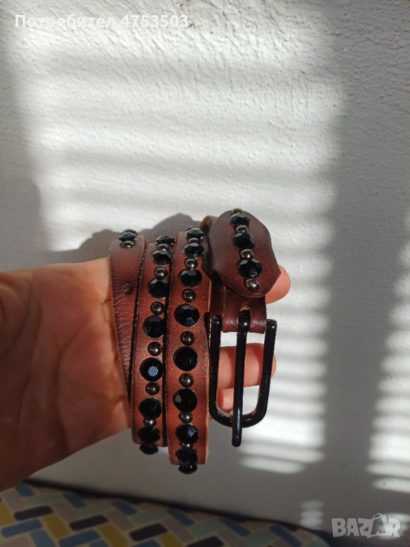 Кафяв колан с камъни естествена кожа → Обява 54325194