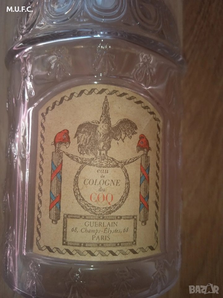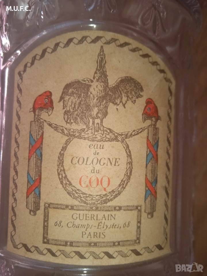 Gurlean Paris Cologne du COQ 1856.Шише за парфюм.Няма такова в България.Перфектно състояние.Много красива и колекционерска вещ.ПО ЗАПАДНИТЕ ТЪРГОВЕ СА МЕЖДУ 300-420 ЕВРО...ДАВАМ ГО ЗА СМЕШНО НИСКА ЦЕНА САМО 40 ЕВРО.Чист подарък.Питайте . Предложете цена.Вижте и другите ми няколко обяви.Не съм търговец разпродавам семейни ценности.