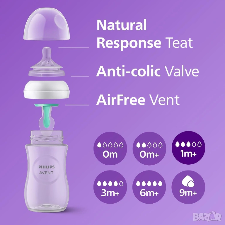 Комплектът за бебета, произведен от Philips Avent е чудесен избор за вашето дете. Продуктите, включени в сета, са подходящи за използване още от самото раждане на детето. Шишетата са изработени от полипропилен без бисфенол А, а бибероните са проектирани така, че бебетата да използват естествения ритъм на пиене, с който са родени, за лесно превключване между гърда и шише.