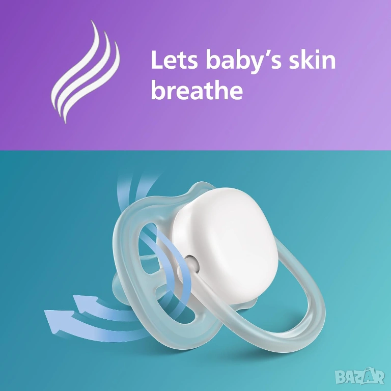 Залъгалките от марката имат щит с 4 големи въздушни отвора за допълнителен въздушен поток и намаляване раздразнението около устата на деликатната бебешка кожа. Заоблените ръбове намаляват натиска върху кожата, докато детенцето суче.