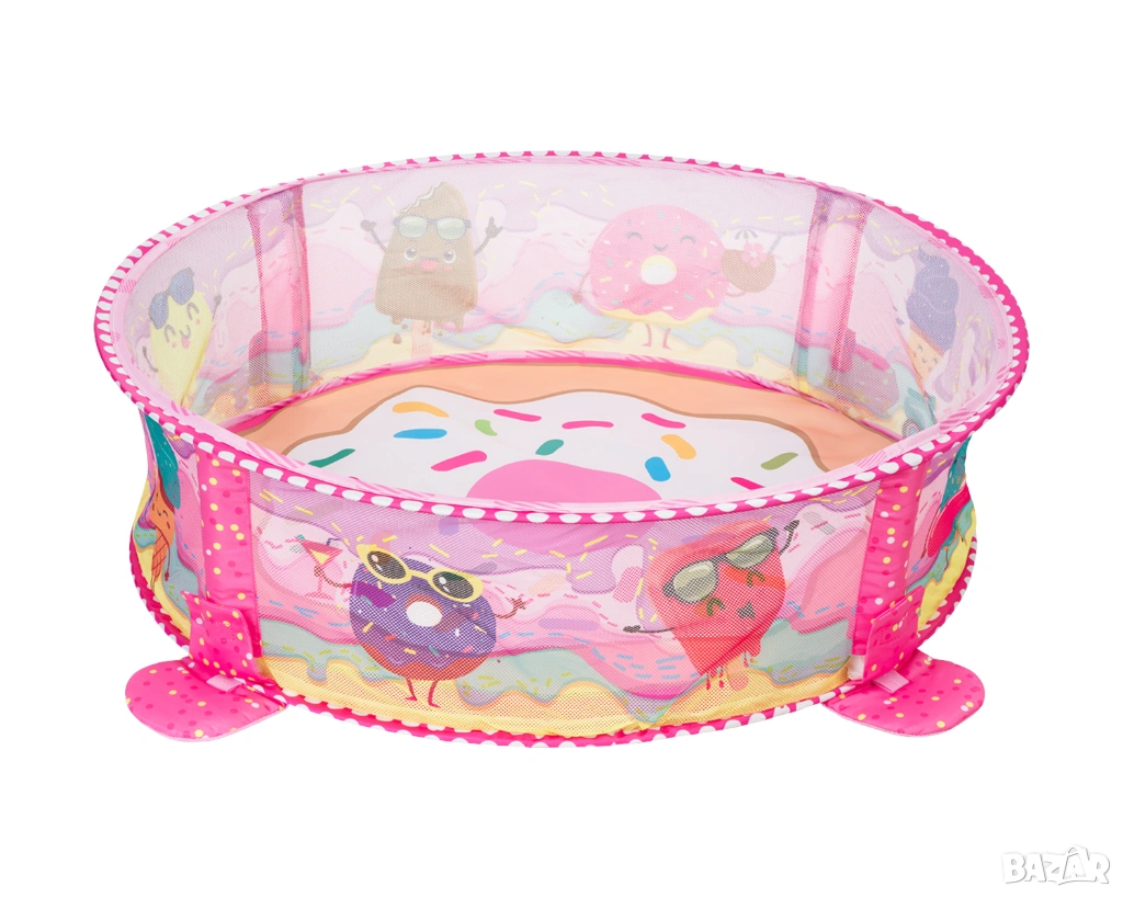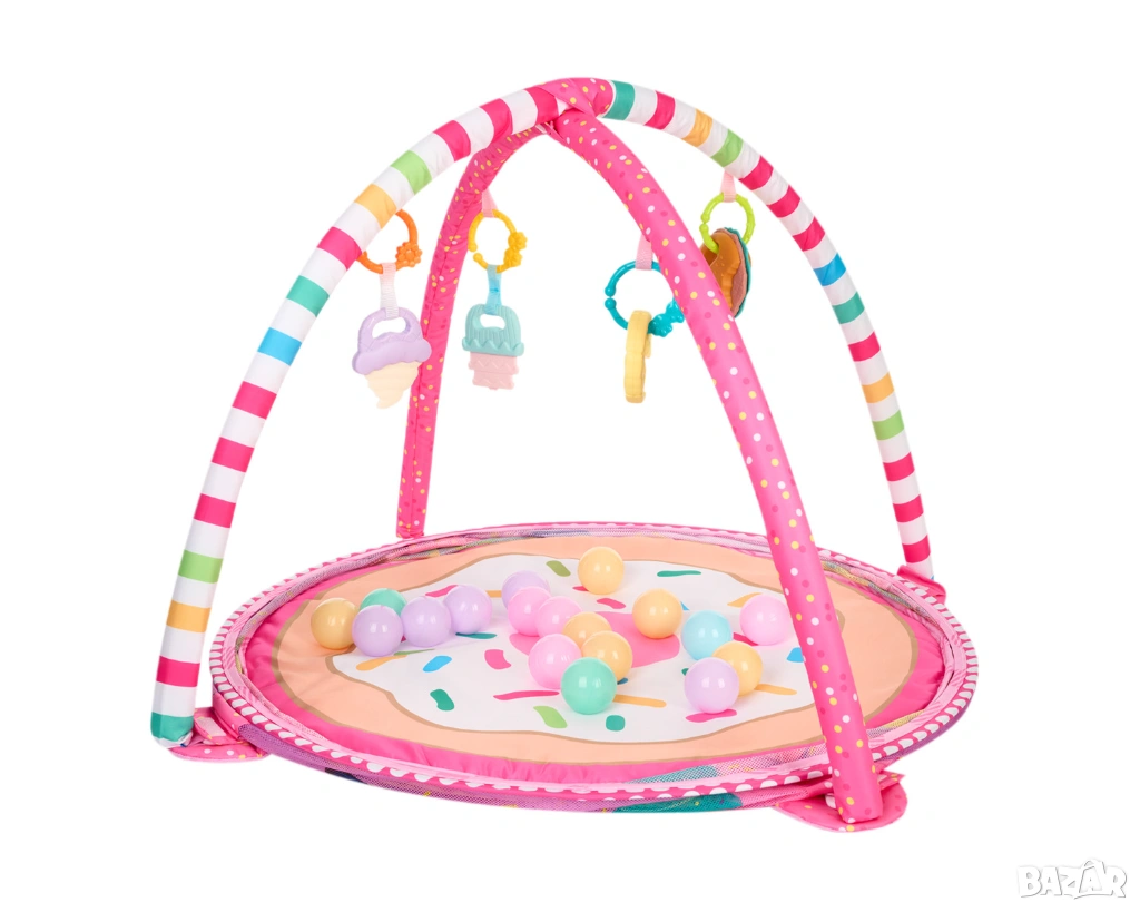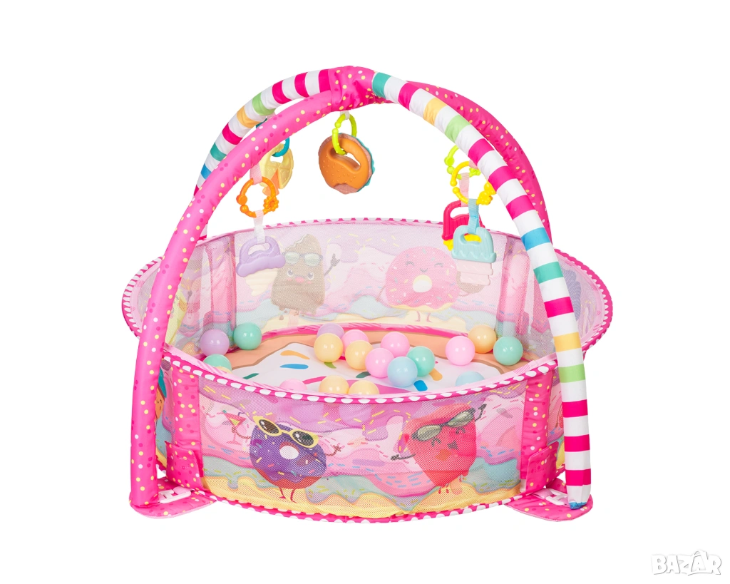 • 30 цветни топчета за игра и отделящи се арки;