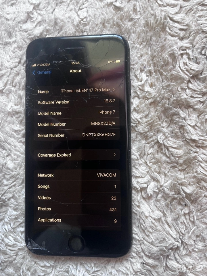 Телефона е със пукнато стъкло,но работи перфектно! има външни забележки! Работи със всички оператори! няма акаунти няма iCloud ! всичко по телефона работи! Пращам само със speedy! Преглед и тест Без Коментар на цената!!!
