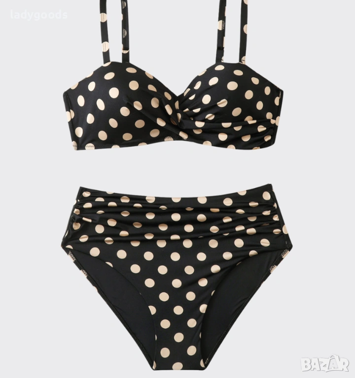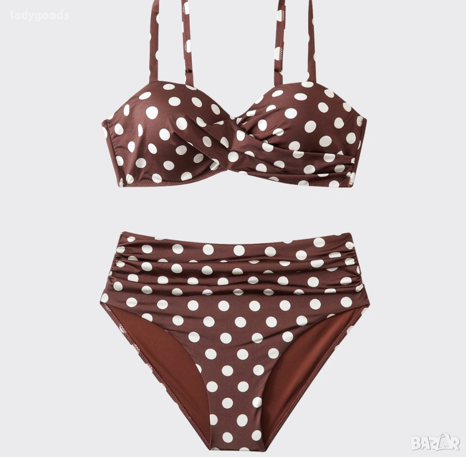 опора и е с регулируеми презрамки. - Долна част: Бикина с висока талия, която предлага добра покривност и лек стягащ ефект, оформяйки силуета по ласкав начин. Материя и Качество: