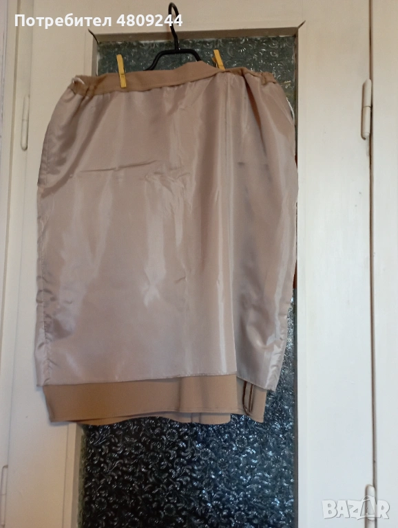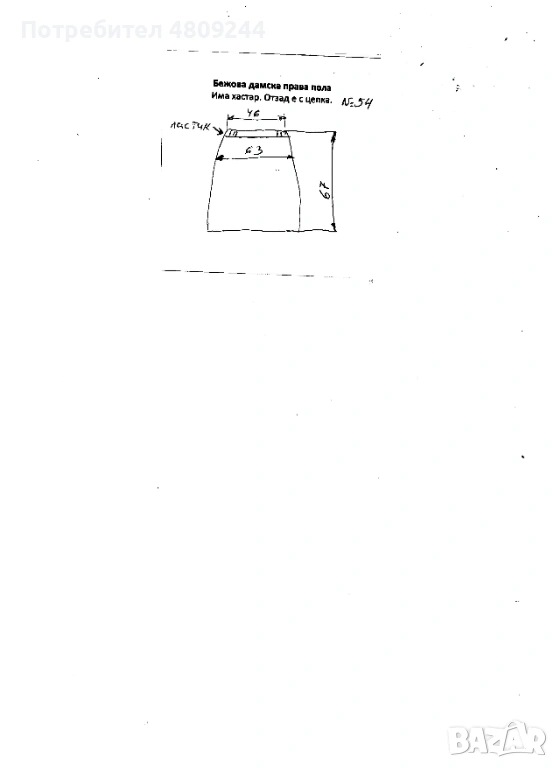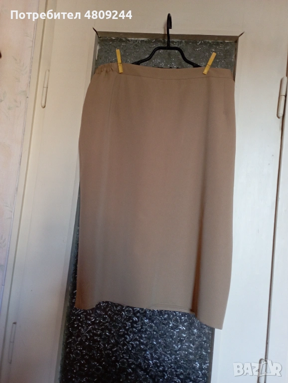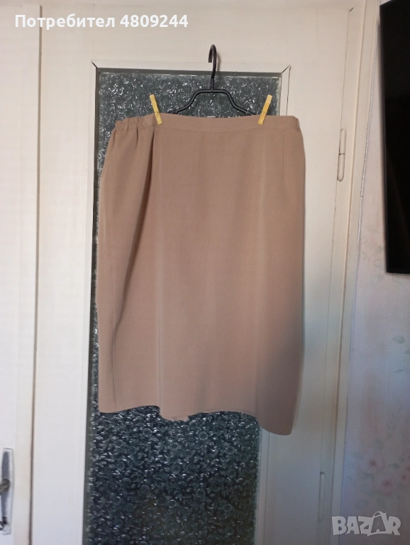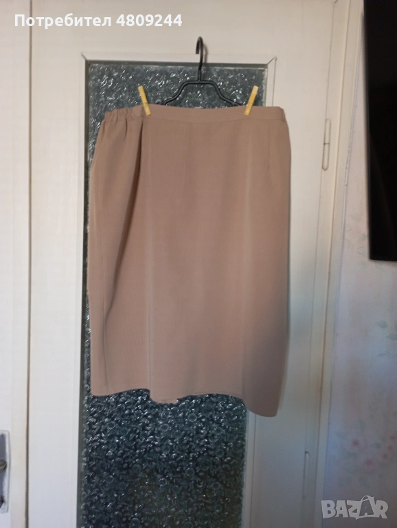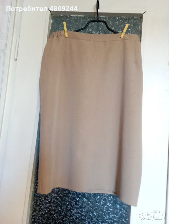 Бежова дамска права пола № 54. Има хастар. Отзад е с цепка. Ханш – 126 см, талия – 92 см, дължина – 67 см.Размерите са описани на схемата.