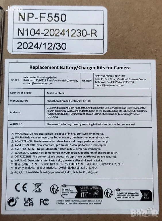 2 батерии NP-F550 (Enegon) за Sony