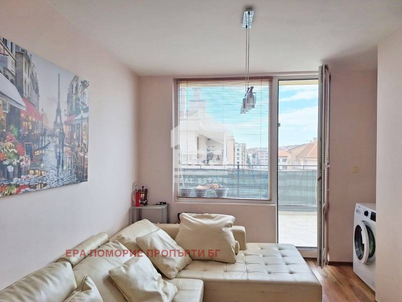 Предлагаме на вашето внимание панорамен апартамент с две спални в готова сграда. Апартамента се състои от дневна с кухненски кът, две спални, баня с WC и голяма панорамна тераса опасваща целия имот. Изложението е югоизток.Апартамента се продава напълно обзаведен и оборудван с мебели и техника, разполага с климатици във всяка от стаите. Подовата настилка е теракота и ламинат. Таксата поддръжка е 150 евро за година. Имота е привлекателен със панорамния си изглед, функционално разпределение и централната локация - в близост до плажа и центъра на града, магазини, ресторанти, паркинги.