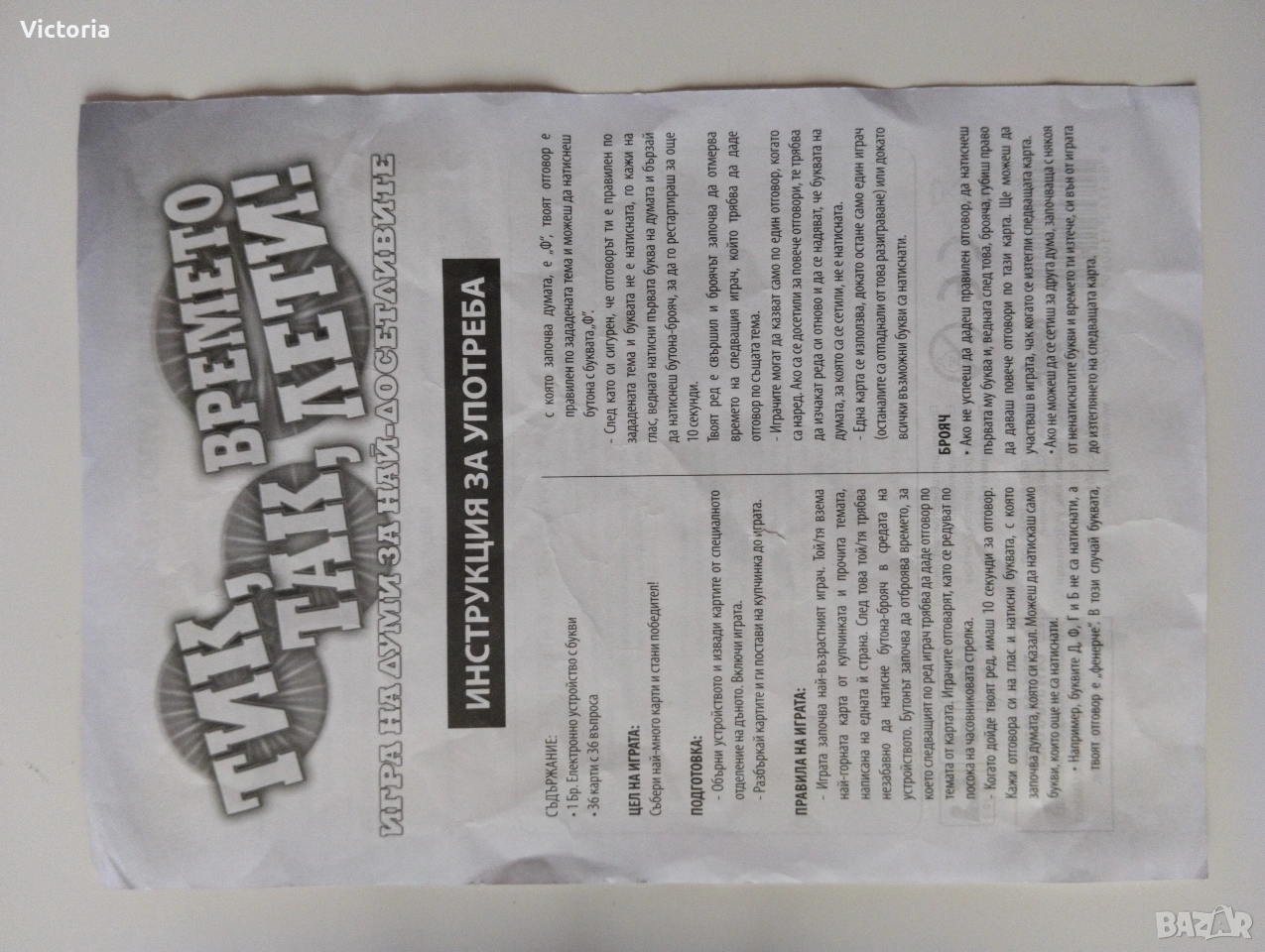 • инструкция за игра.