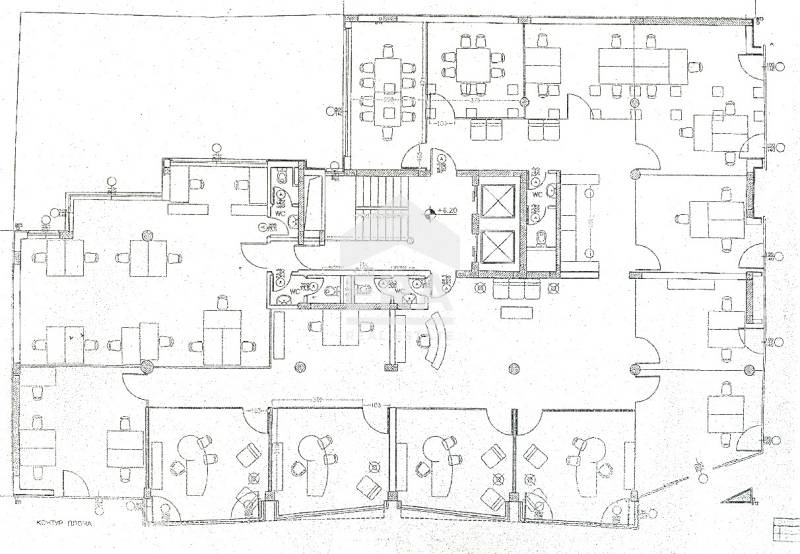 Разпределение: Просторни и светли работни зони от тип open space, отделни самостоятелни помещения, подходящи за кабинети или конферентни зали, кът с кухненски бокс, сървърно помещение, два санитарни възела и тераса.