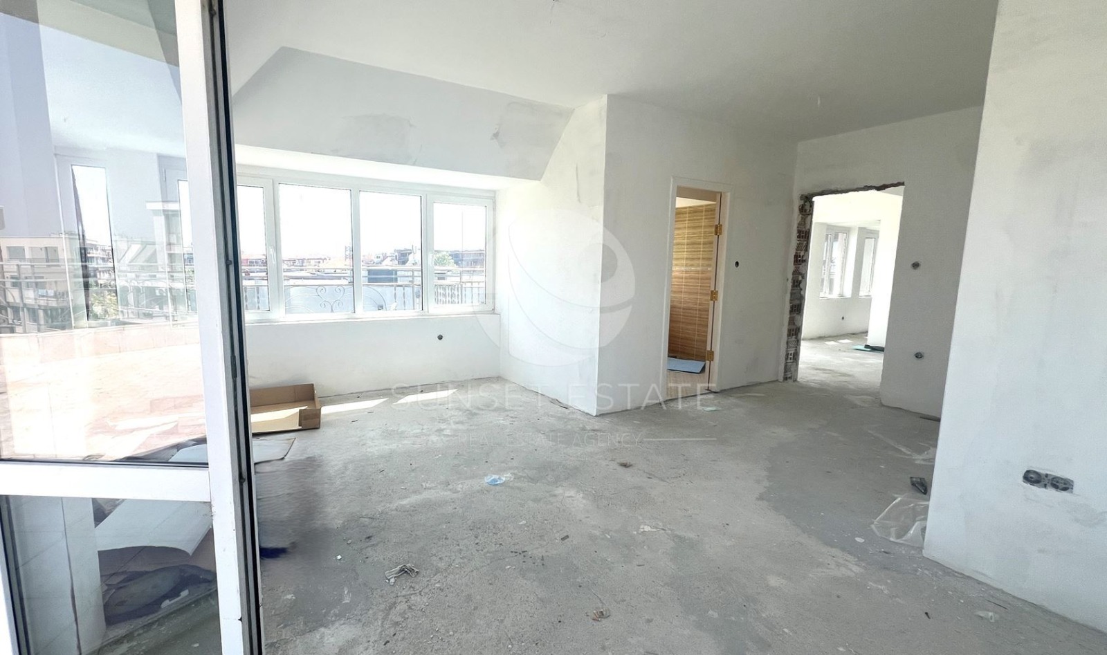 Разпределение: Две просторни дневни с кухненски кът; Две спални; Две бани с тоалетни; Огромна тераса с възможност за усвояване;