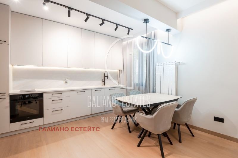 Galiano Estates има удоволствието да Ви представи двустаен апартамент с включено паркомясто в идеалния център на София. Уютен апартамент, модерно обзаведен, след основен ремонт с нови мебели по дизайнерски проект, на първи етаж /обезопасен/. Имота има обща площ 60 кв.м и следното разпределение: входно антре, модерна всекидневна, спалня с вграден гардероб, напълно оборудвана кухня с модерни електроуреди, реновирана баня с висококачествени материали. Апартамента е с дизайнерски интериор с внимание към всеки детайл, с модерни мебели и практични решения за съхранение. Отоплението е на ТЕЦ и климатици висок клас.