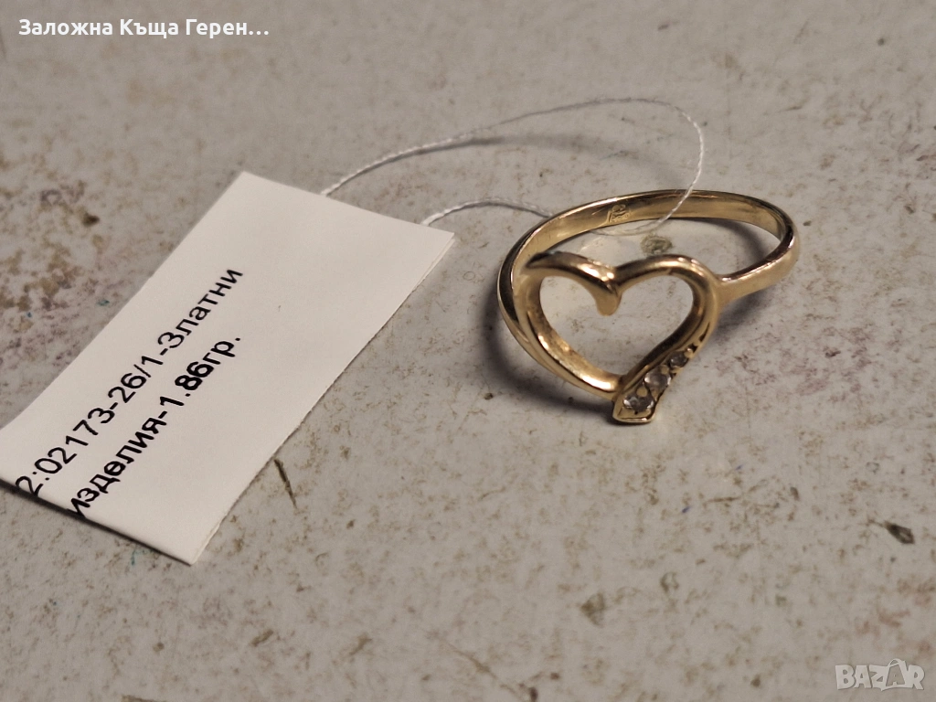 Златен дамски пръстен 1,86гр., снимка 1 - Пръстени - 54327424 Златен дамски пръстен 1,86гр., снимка 2 - Пръстени - 54327424 Златен дамски пръстен 1,86гр., снимка 3 - Пръстени - 54327424 1/3