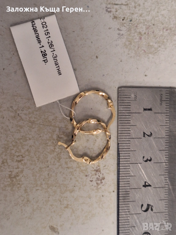 Дамски златни обеци 1,28гр. → Обява 54327439
