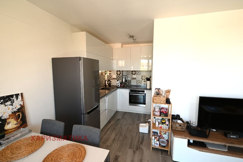 Дневната е комфортно организирана с кът за почивка, трапезарна зона и модерна кухня с вградени електроуреди. Втората стая дава отлична гъвкавост за работа от вкъщи, детска стая или стая за гости.