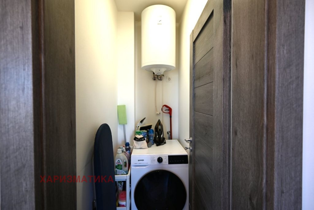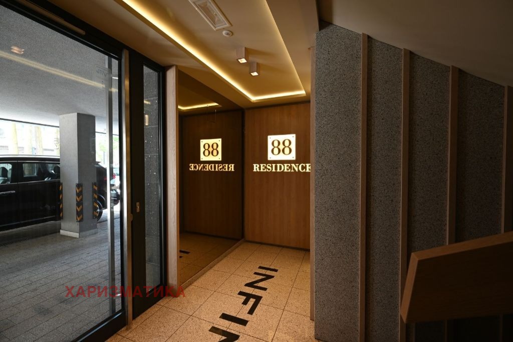 Сградата е модерна, с представителни общи части и удобен достъп. Към апартамента има собствено паркомясто в двора, което е сериозно предимство за района.