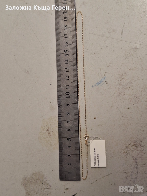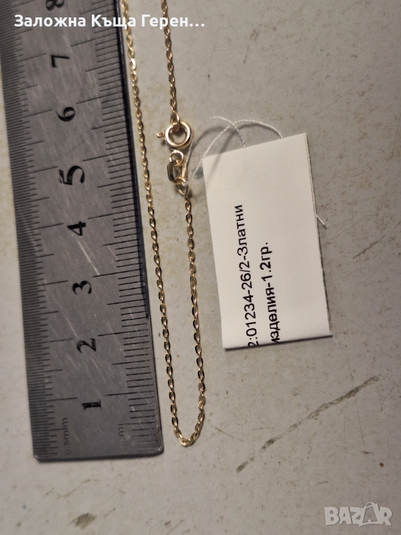 Златен синджир 1,2гр., снимка 1 - Колиета, медальони, синджири - 54327715 Златен синджир 1,2гр., снимка 2 - Колиета, медальони, синджири - 54327715 Златен синджир 1,2гр., снимка 3 - Колиета, медальони, синджири - 54327715 1/3