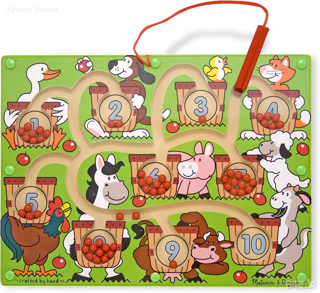 Играта е подходяща за всяко място и може да занимава детето по време на пътуване или пък просто докато вършите някаква работа. Магнитният лабиринт ще развие логическото мислене и фината моторика на детето. Също така ще му помогне да направи първите си стъпки в математиката и ще се запознае от близо с някои животни, които живеят във фермата.