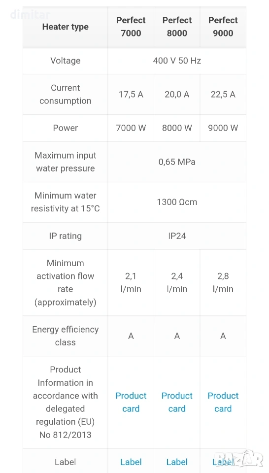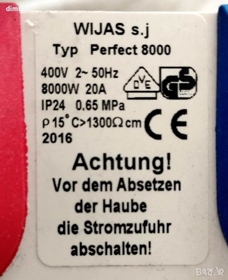 Проточен бойлер Wijas perfect 8000, 6,5 бара, 8 kw, 400V, 3/8" фитинги, всички данни на снимките.