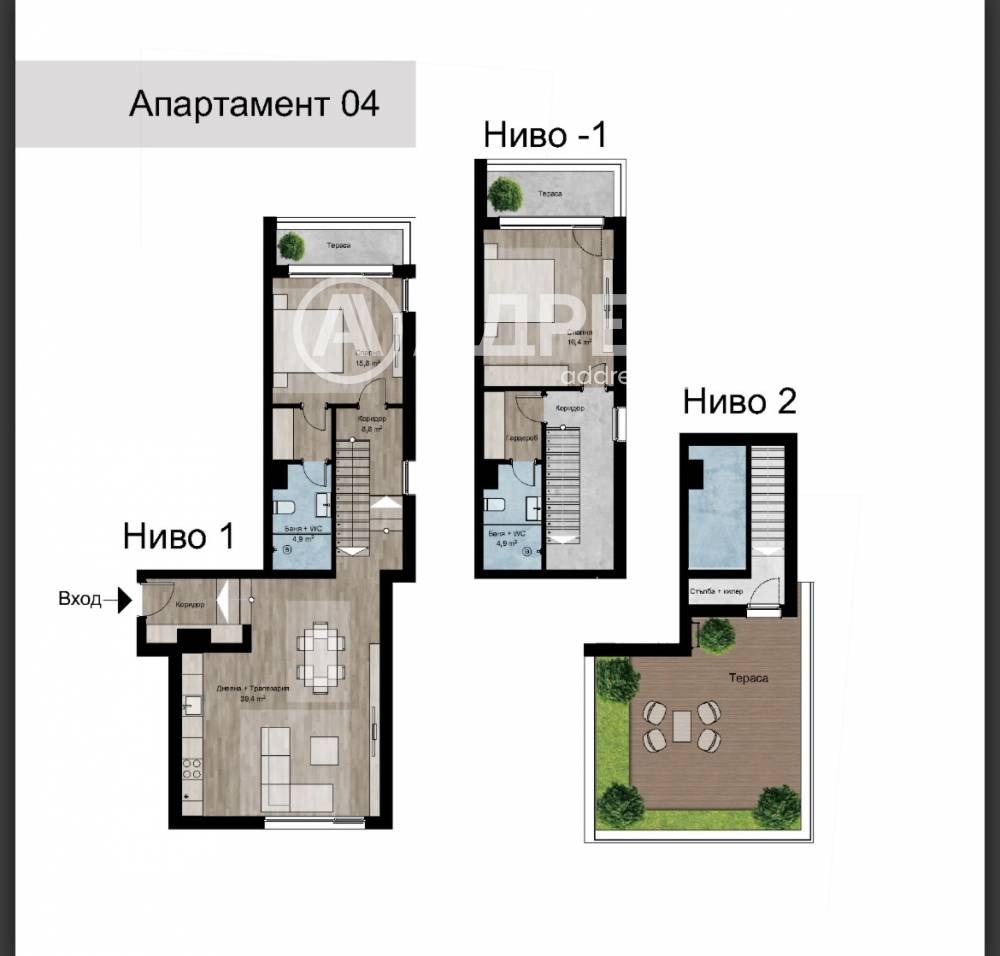 Тристаен апартамент на три нива, разположен в един от най-предпочитаните и спокойни райони на София-м-т Гърдова глава.