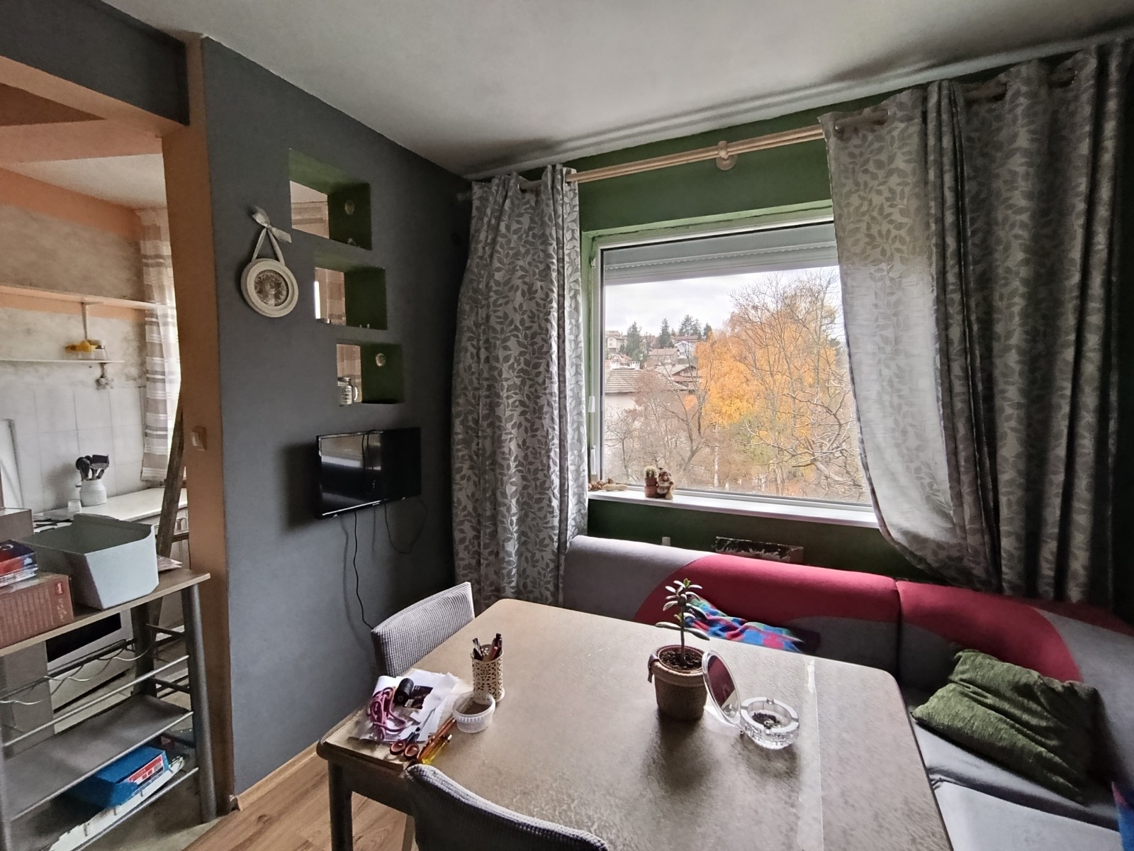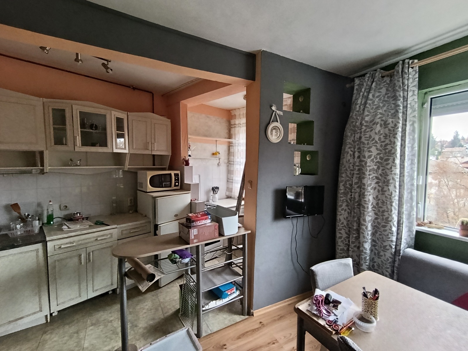 Дневна част с кухненски бокс и трапезария.