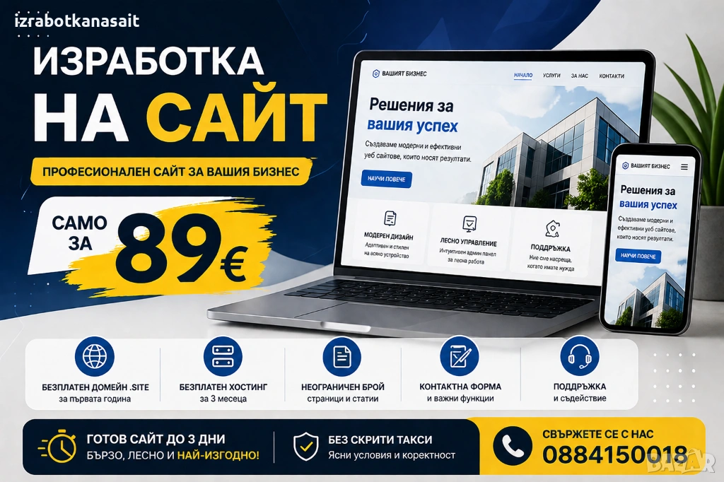 Имате нужда от професионален сайт, но не искате да инвестирате излишно? Предлагаме цялостна изработка на сайт на изключително достъпна цена – без усложнения и без скрити условия.
