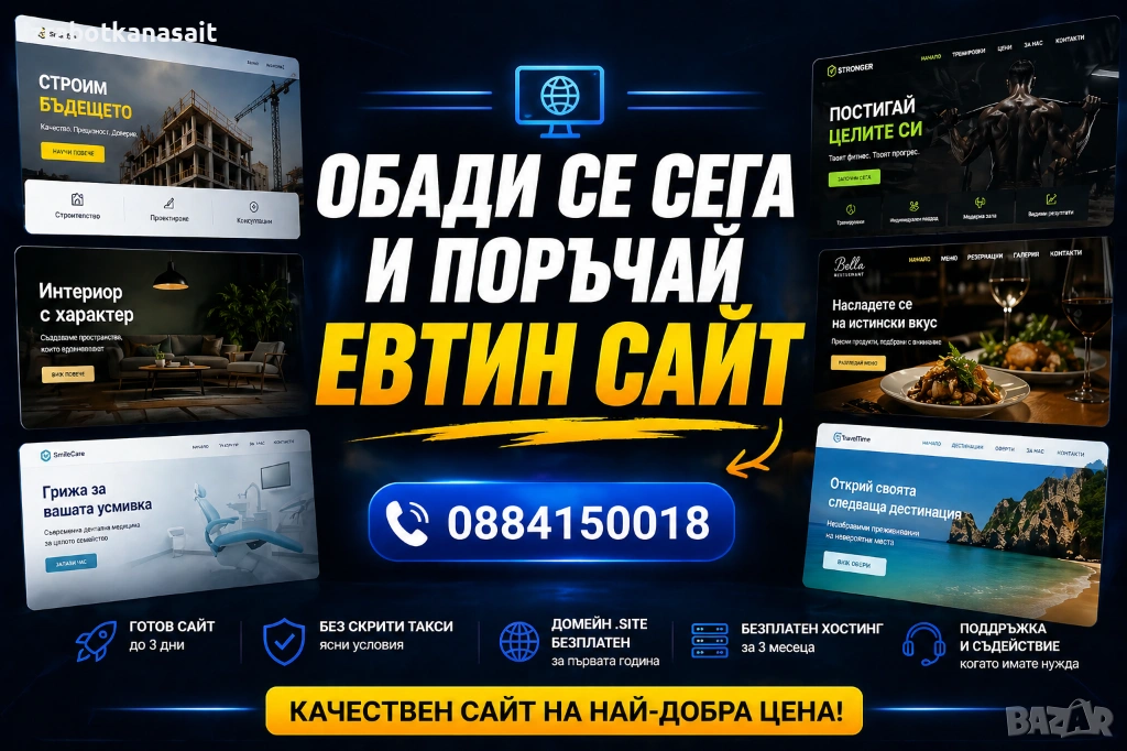 Свържете се с нас по телефона или ни пишете и започнете с работещ сайт без излишно забавяне.