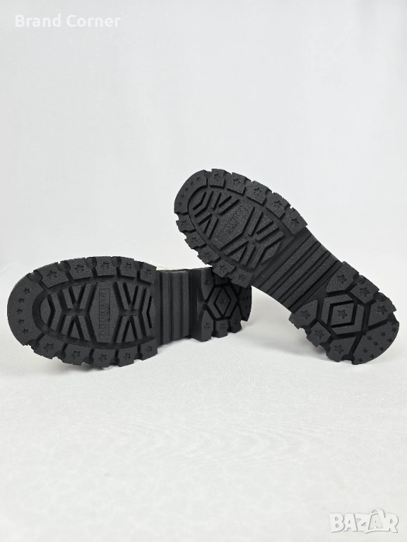Подметка: Масивна, груба "тракторна" подметка в черно с дълбок грайфер, която осигурява стабилност, перфектно сцепление и изолира отлично от студа. Отзад на петата и на самия грайфер има релефно лого на марката.