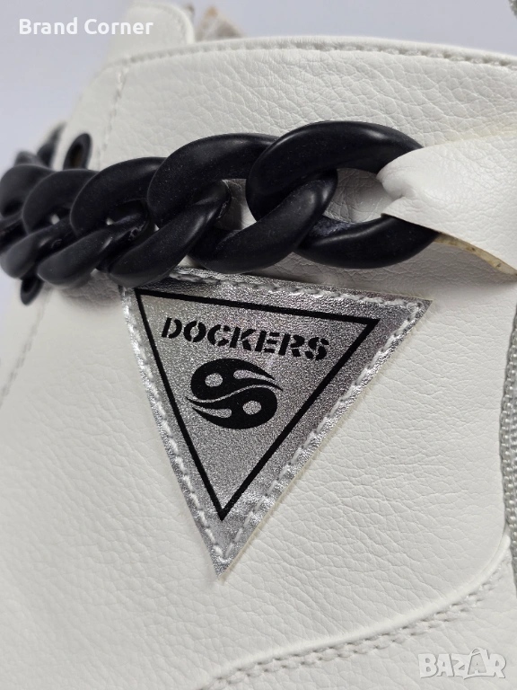 Триъгълна емблема с логото на Dockers от външната страна.