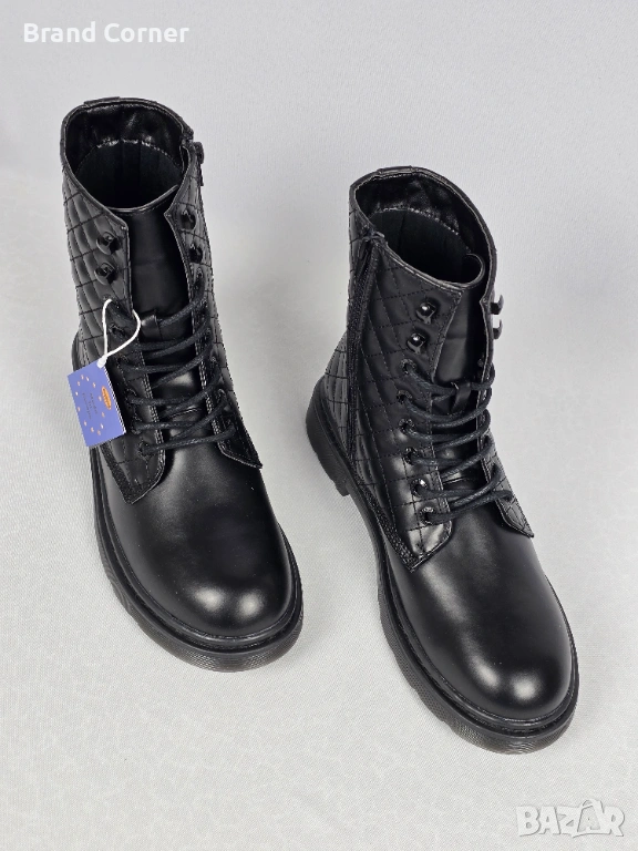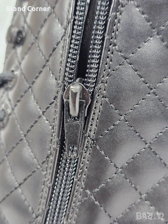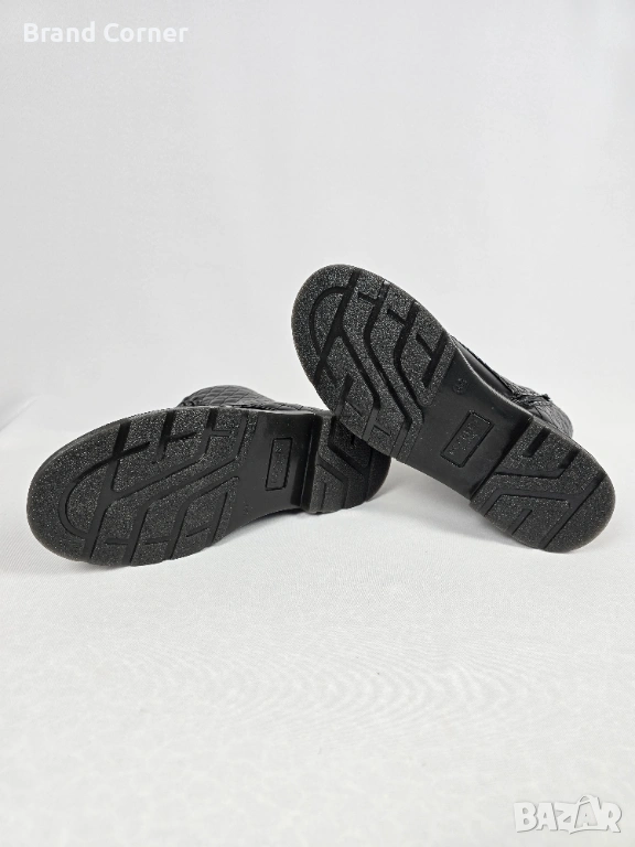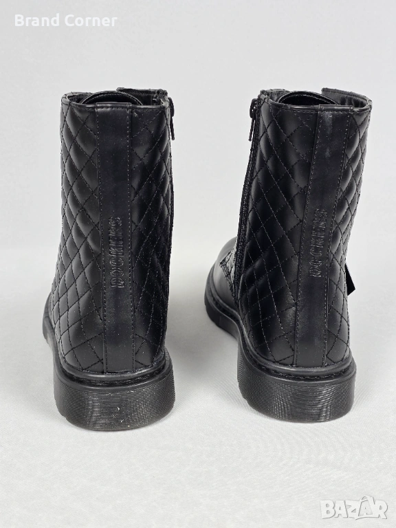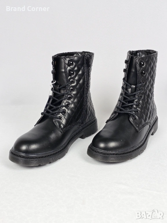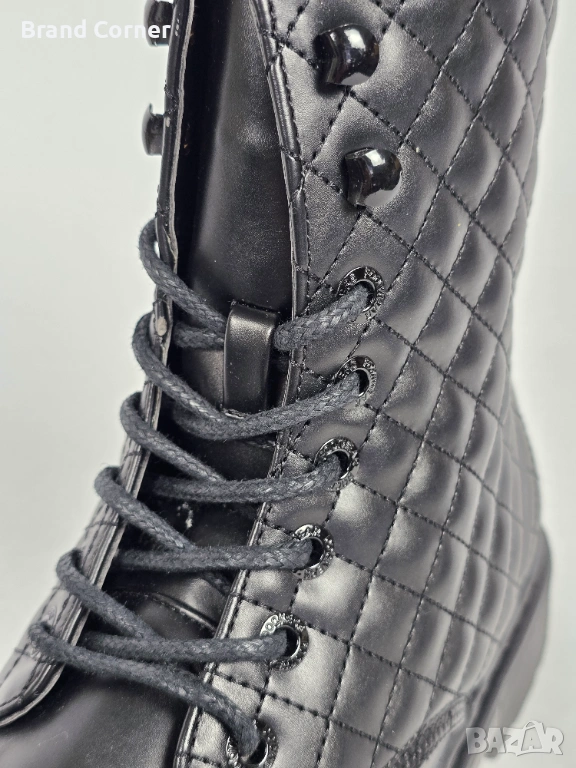 Дизайн: Елегантен черен цвят с ефектна капитонирана (quilted) част около глезена, която придава много стилен и актуален вид. На петата има стилно релефно лого на марката.