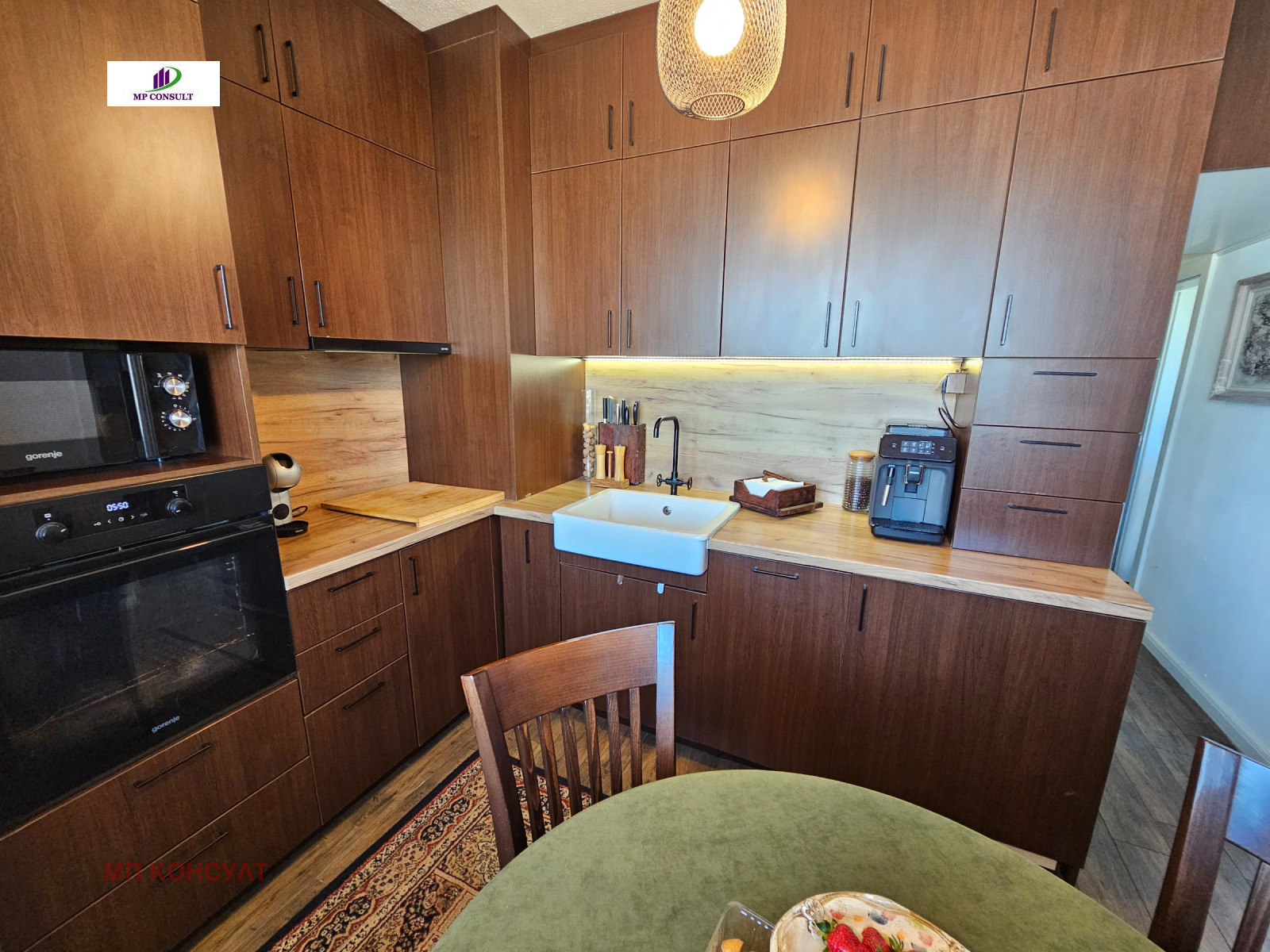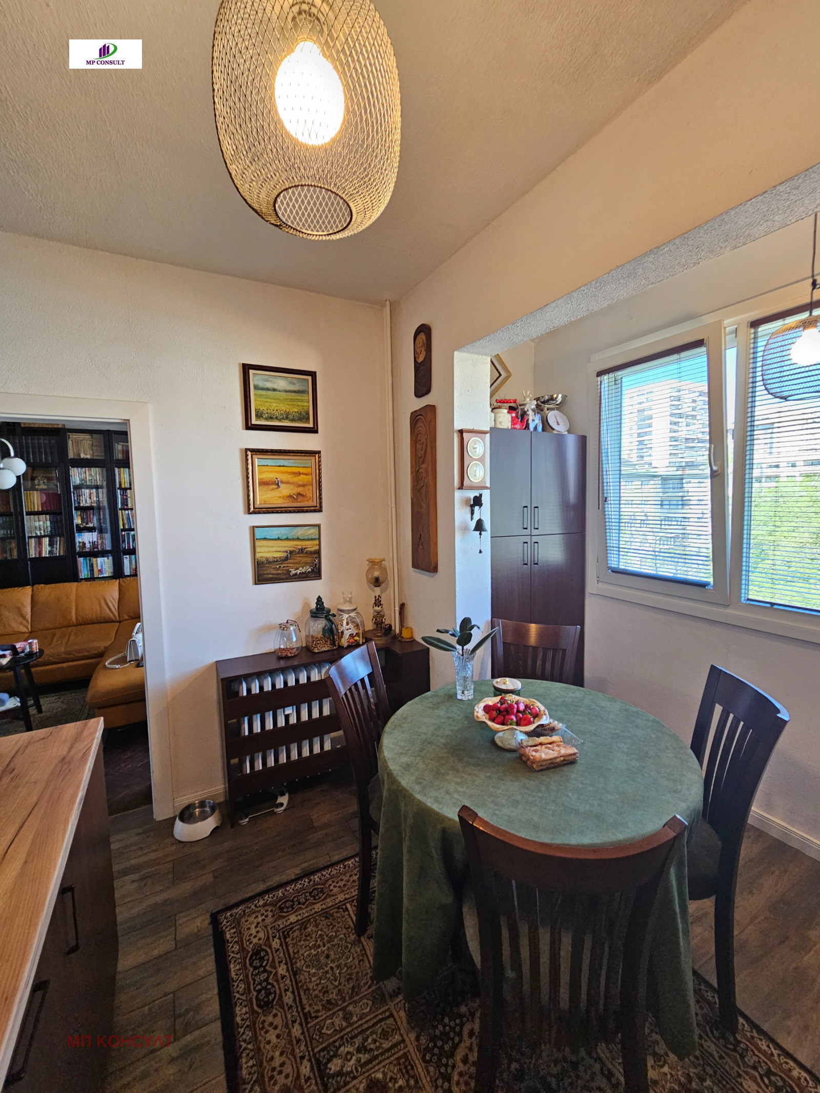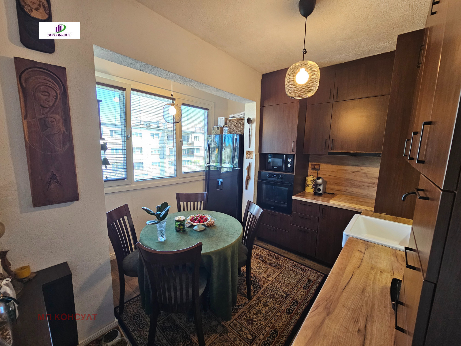 Предлагаме двустаен, непреходен имот в един от най- предпочитаните райони на Сафия.В непосредствена близост до спирки на градски транспорт.Удобно и лесно пътуване с трамвай до идеален център.На минути разстояние до големи вериги супермаркети и МОЛ 'България'.Вход с контролиран достъп.Асансьор.Имотът е изцяло саниран със смененена ПВЦ дограма.Сменена ел. инсталация и ВИК , както в имота така и на общите части.Централен тец.Климатик.Продава се изцяло обзаведен с нови мебели и уреди, които са в гаранция.Терасата е остъклена и топлоизолирана.