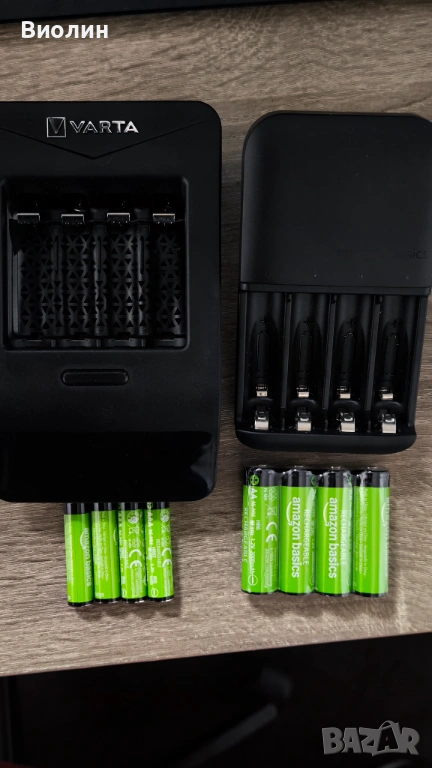 Зарядно Amazon за батерии в комплект с 4хААА и 4хАА. Подарък зарядно Varta не е тествано.