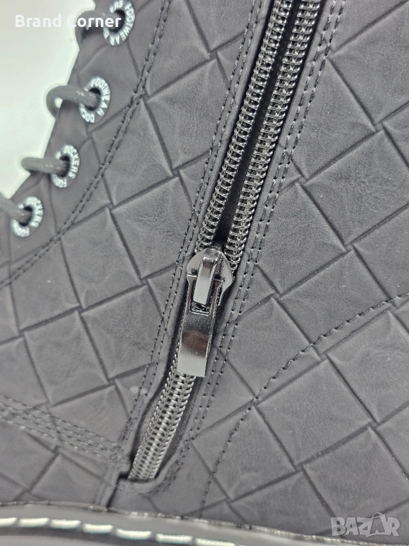 Материал: Висококачествена еко кожа с ефектна релефна (капитонирана/плетен тип) текстура, която придава уникален характер на обувката.