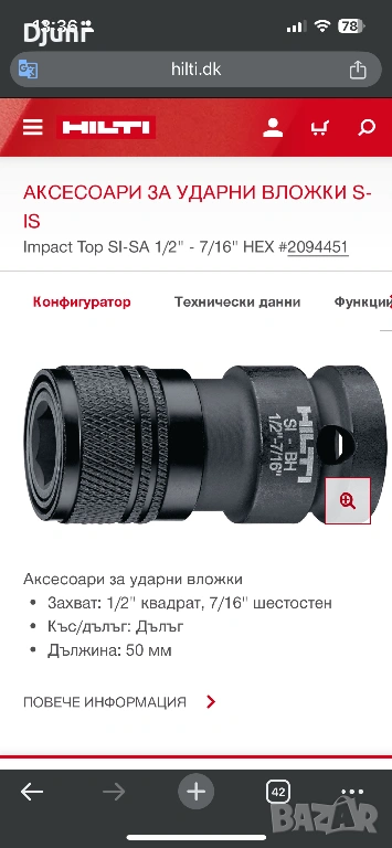 Hilti Impact Top SI-SA 1/2" - 7/16", снимка 1 - Други машини и части - 54328628 Hilti Impact Top SI-SA 1/2" - 7/16", снимка 2 - Други машини и части - 54328628 Hilti Impact Top SI-SA 1/2" - 7/16", снимка 3 - Други машини и части - 54328628 Hilti Impact Top SI-SA 1/2" - 7/16", снимка 4 - Други машини и части - 54328628 1/4