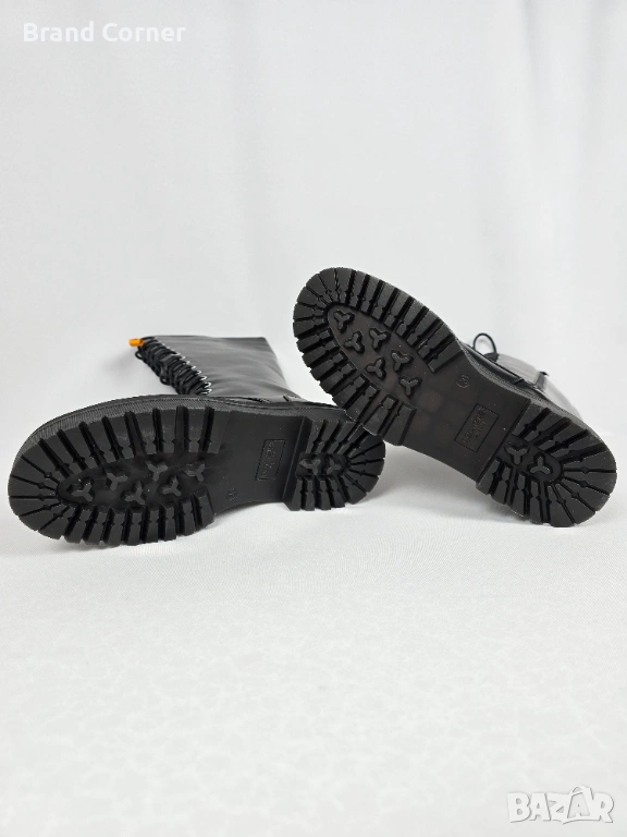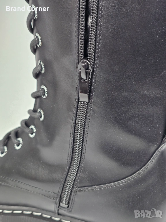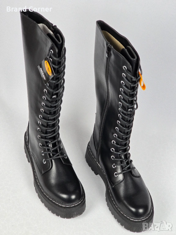 Дизайн и закопчаване: Моделът е с висок профил (до под коляното) в актуален грънж/милитари стил. Разполагат с пълно дълго връзване отпред (с метални брандирани капси) за перфектно регулиране според ширината на прасеца, както и с цял страничен вътрешен цип за изключително лесно и бързо обуване и събуване.