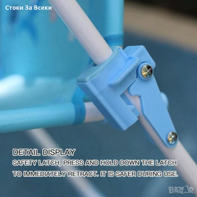 Практичен детски сгъваем стол с чадър, създаден за комфорт и защита по време на игри навън. Идеален за деца при плаж, пикник, къмпинг или почивка в двора.