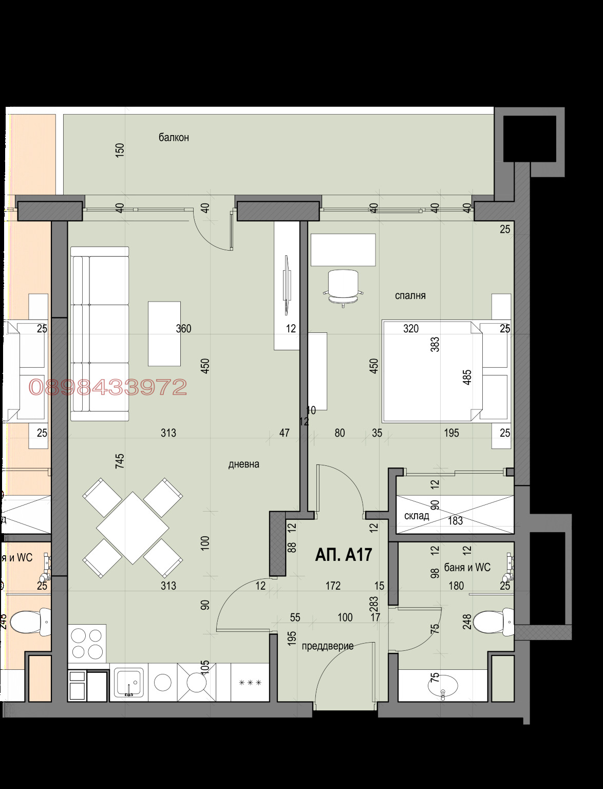 Имотът е разположен на 3-ти етаж от общо 17 и се отличава с функционално разпределение, правилни форми и отлична естествена светлина.