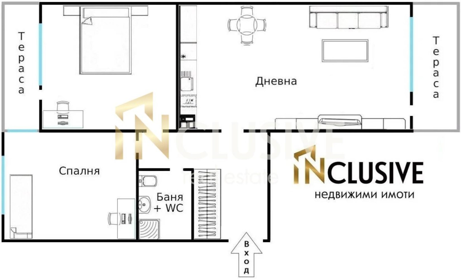 Дневна с кухненски бокс 2 самостоятелни спални 1 баня с тоалетна 2 балкона Голямо антре с вграден гардероб и удобни места за съхранение
