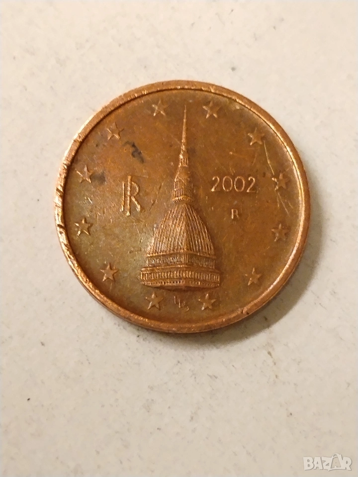 Това е монета от 2 евроцента от Италия, сечена през 2002 г. На лицевата страна е изобразена сградата Mole Antonelliana в Торино.