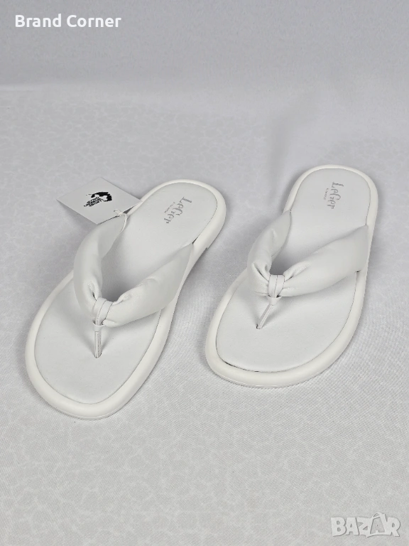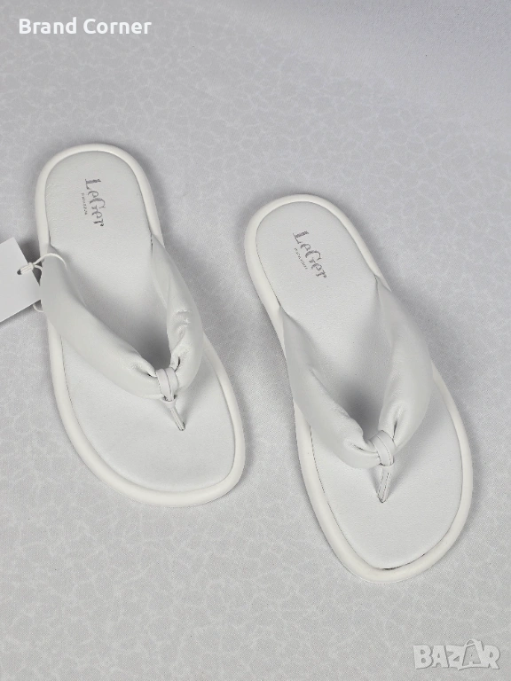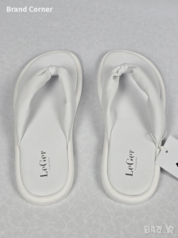 Нови дамски чехли LeGer by Lena Gercke, размер 40, в бял цвят. Моделът е изчистен, стилен и много удобен, с модерна мека подплатена каишка и дизайн тип „между пръстите“.