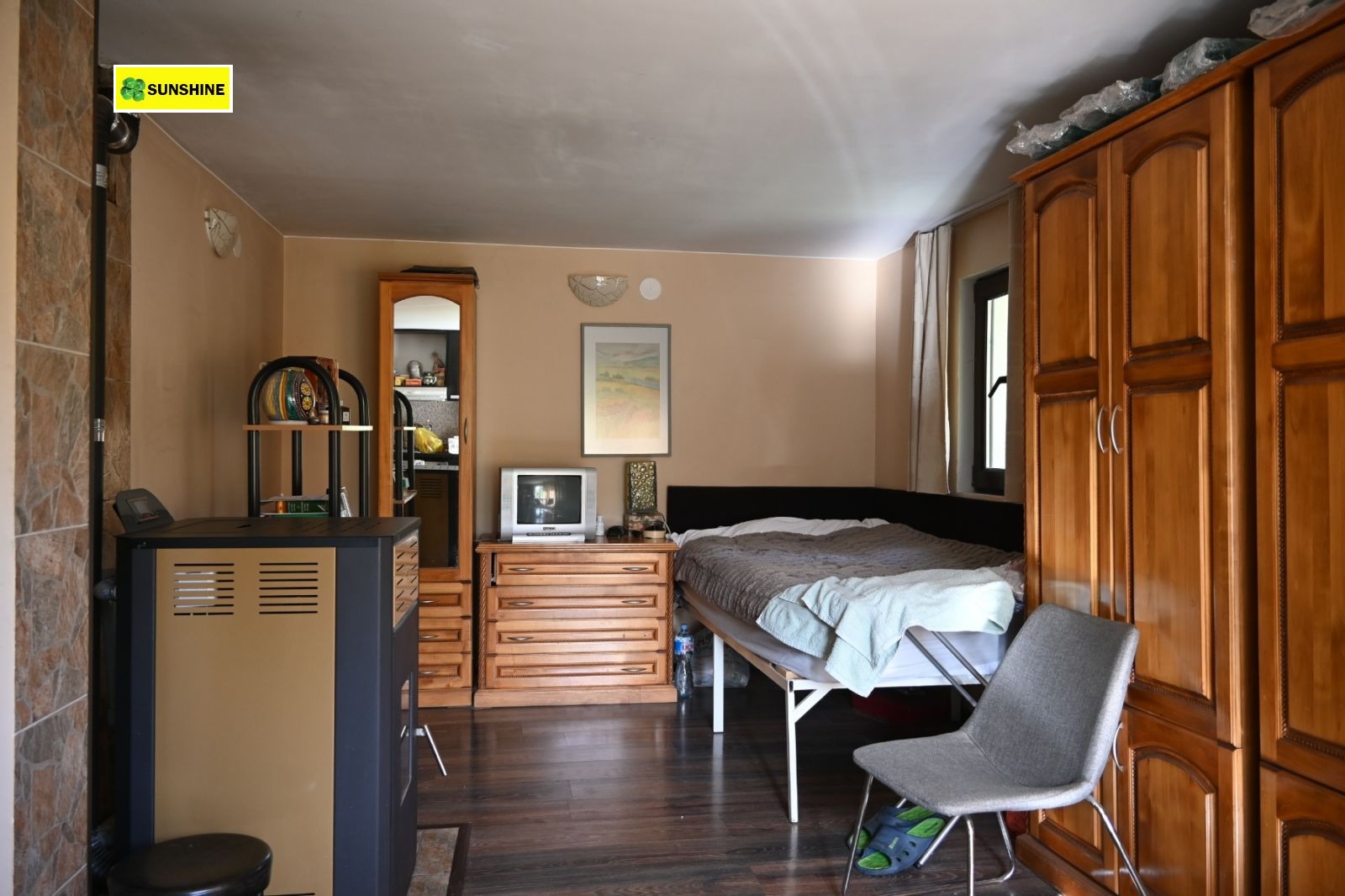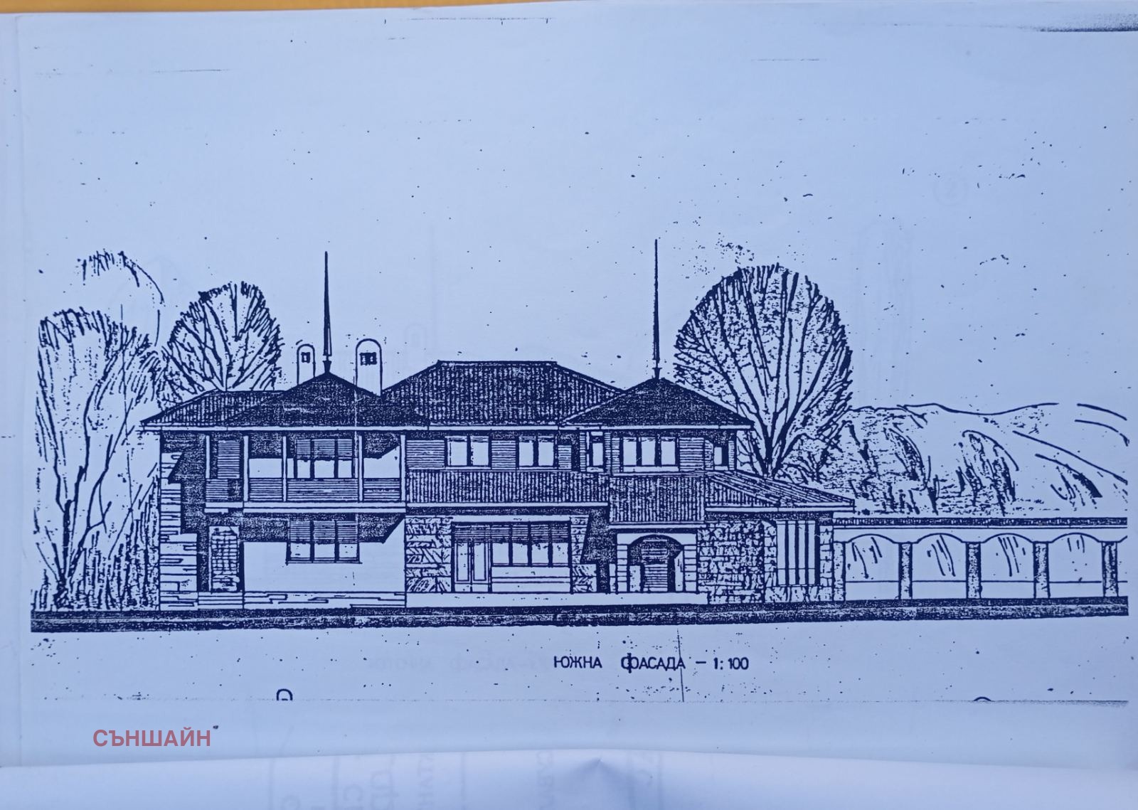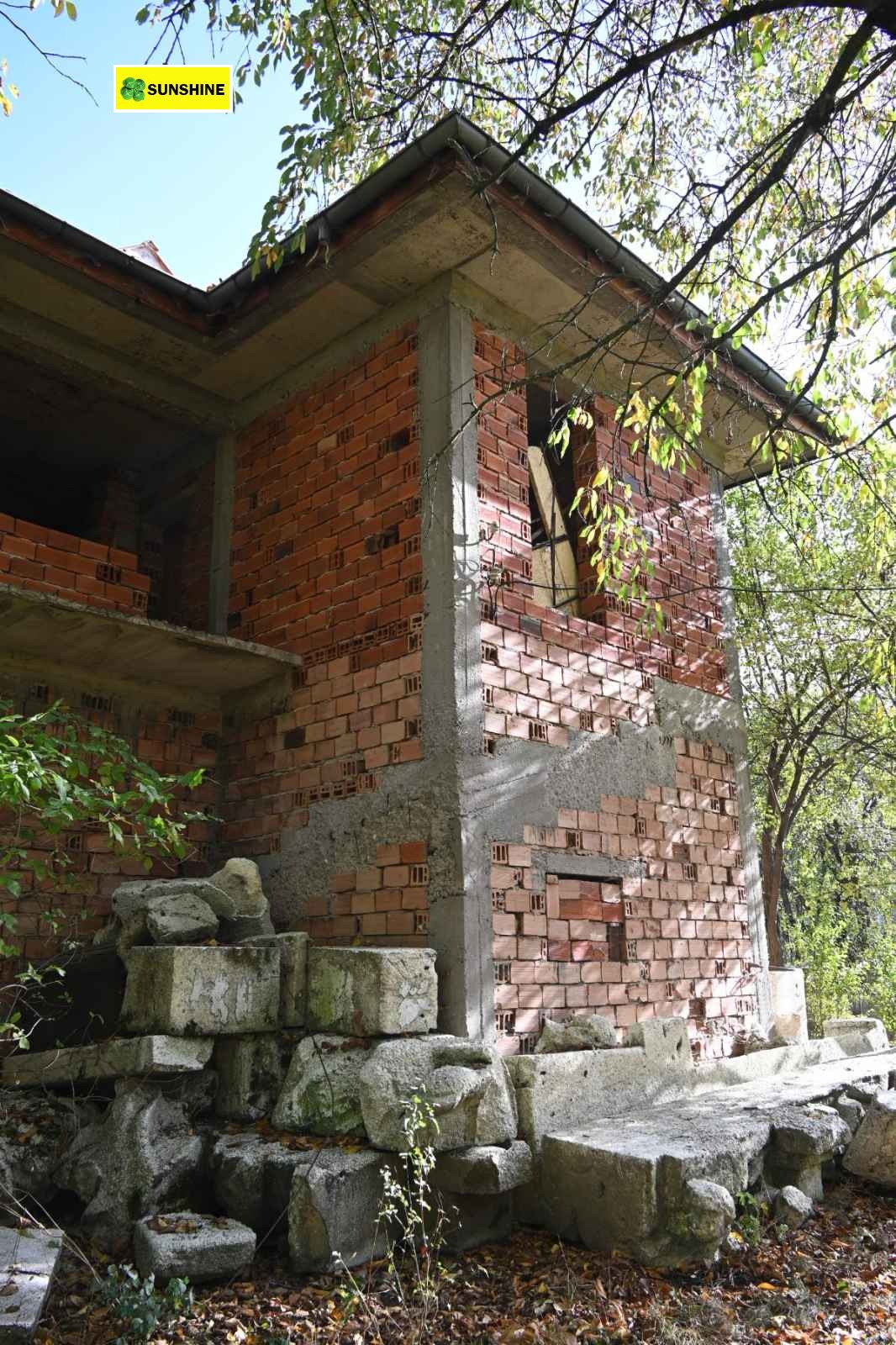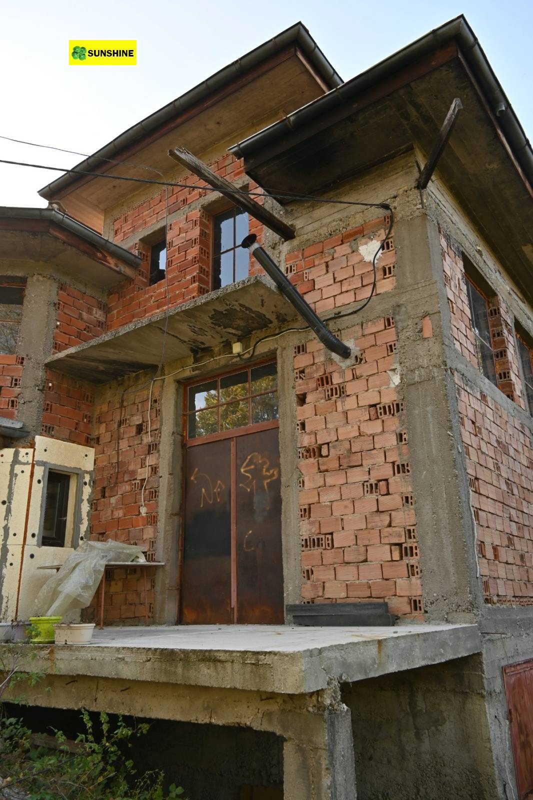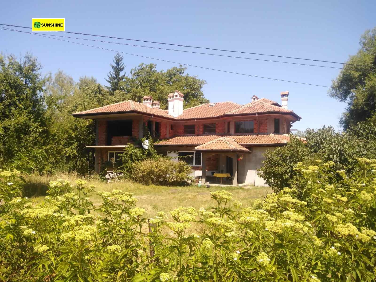 Сградата се състои от две части, с два отделни входа. Първата част на сградата не е измазана и съдържа: дрешник, дневна и трапезария с излаз към двора, кухня, баня; вътрешни стълби към втория етаж с дрешник, две стаи с тераси, баня. Втората част на къщата е водоснабдена, топлоизолирана, с трифазен ток и локално парно с пелети. Тя включва: стая с кухненски бокс, голяма баня, помещение от 100 кв. м /подходящо за ателие, фитнес салон, механа и др./; вътрешни стълби към втория етаж, спалня, бокс, санитарен възел, тераса; вътрешни стълби към таванско помещение подходящо за ателие, или жилищна площ. В сутерена на къщата са изградени два гаража и три мазета. На купувача се предоставя цялата одобрена строителна документация. Имотът е подходящ за целогодишно жилищно обитаване и/или за бизнес дейност - за ателие, работилница, фитнес, хотел, къща за гости и т. н.